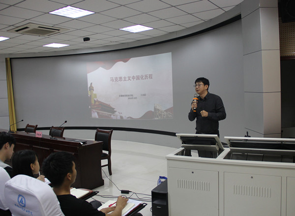 开班仪式后,王良斌为青马班学员讲授第一课《马克思主义中国化的历程》,他从马克思主义成就、中国为什么选择马克思主义、马克思主义中国化的理论成果三个方面向同学们介绍了马克思的生平以及马克思主义,让同学们对马克思及马克思主义有了一个清晰的认识,并通过大量生动详实的案例,深刻阐释了马克思主义中国化进程,中华民族从站起来、富起来到强起来的伟大飞跃。勉励团学干部骨干要充分发挥模范带头作用,不辜负党和国家的重托,坚定为中华民族伟大复兴中国梦奋斗的决心和信心,让青春年华在为国家、为人民的奉献中焕发出绚丽光彩。