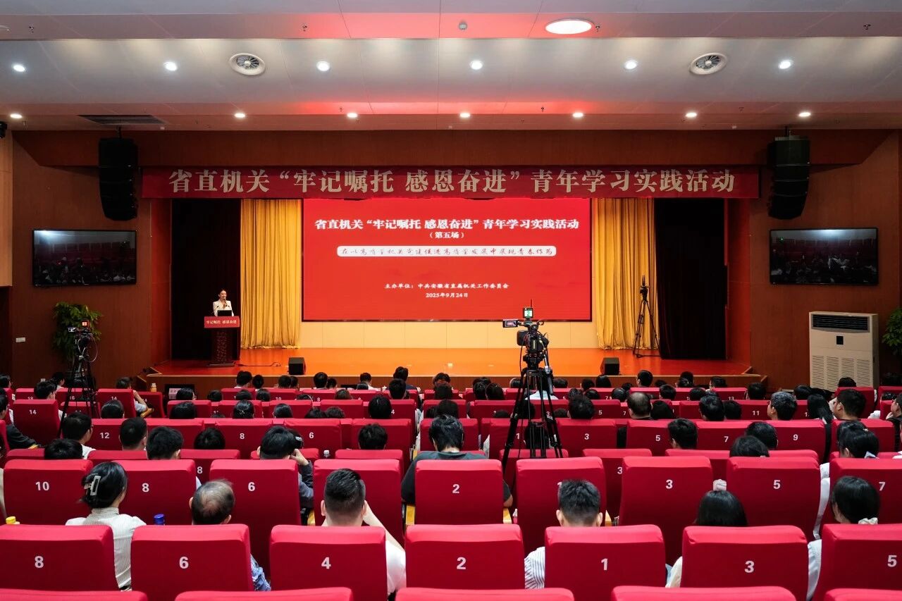 9月24日上午8:50,省直机关“牢记嘱托感恩奋进”青年学习实践活动(第五场)在省直机关工委党校1楼报告厅举行,活动同步开设网络分会场。