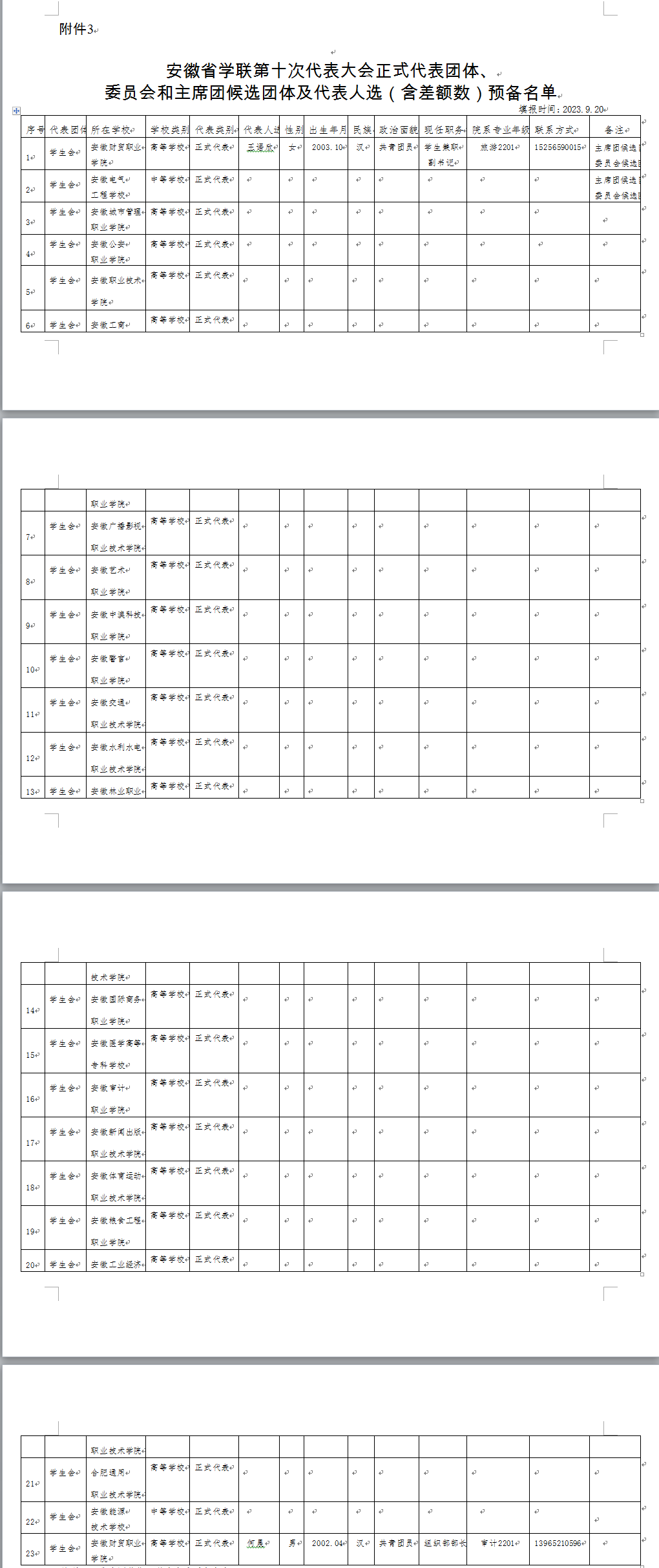 根据团省委、省学联部署要求,依据《关于推选安徽省学生联合会第十次代表大会代表团体和第十届委员会、主席团候选团体及各团体代表的通知》(皖青联[2023] 38号)文件精神,现将beat365在线唯一官网推选名单公示如下: