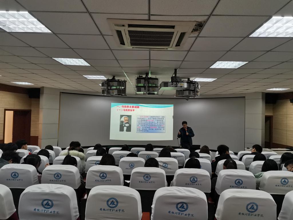 12月16日下午,“青马工程”培训班第四讲在3D实训室开讲,学院团委特别邀请了马克思主义学院院长王良斌作了题为《马克思主义中国化的历程与启示》辅导报告,80余名团学干部聆听了报告会。