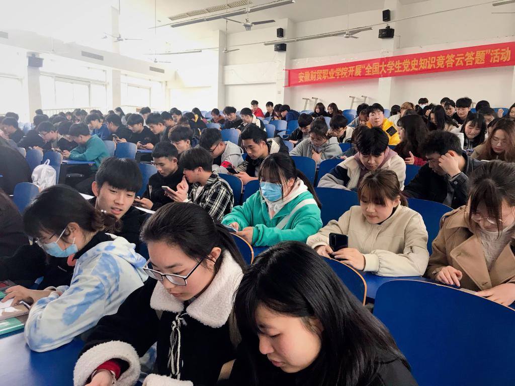 教育部、国家语委、中央广播电视总台联合开展《全国大学生党史知识竞答大会》,节目设置了“千校学生云答题”环节。3月18日,学院团委组织全校150名在校大学生,在5103学生活动中心开展《全国大学生党史知识竞答大会》首日云答题活动。