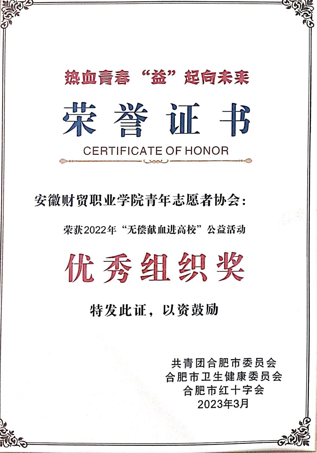 青年志愿者协会在组织开展各种志愿服务活动的同时,也取得了一系列显著的成绩和荣誉,青年志愿者协会多次荣获校级优秀学生社团的荣誉称号,青年志愿者协会荣获2022年“无偿献血进高校”公益活动优秀组织奖。