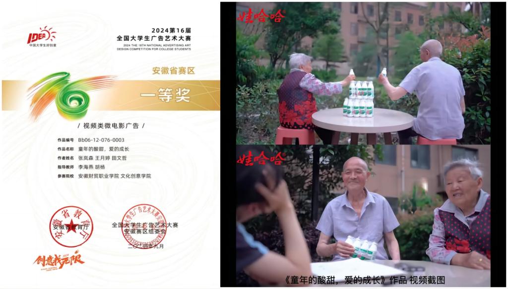 近期,第十六届安徽省大学生广告艺术大赛评选结果公布,我校文化创意学院艺术设计教研室师生在此次比赛中共斩获三个一等奖、七个二等奖的佳绩,一等奖的获奖数量突破了历史最好成绩。获奖作品不仅在艺术表现力上极具创新性,还充分体现了广告作品与时代背景的紧密结合,展现了学生对社会热点和文化内涵的敏锐把握。