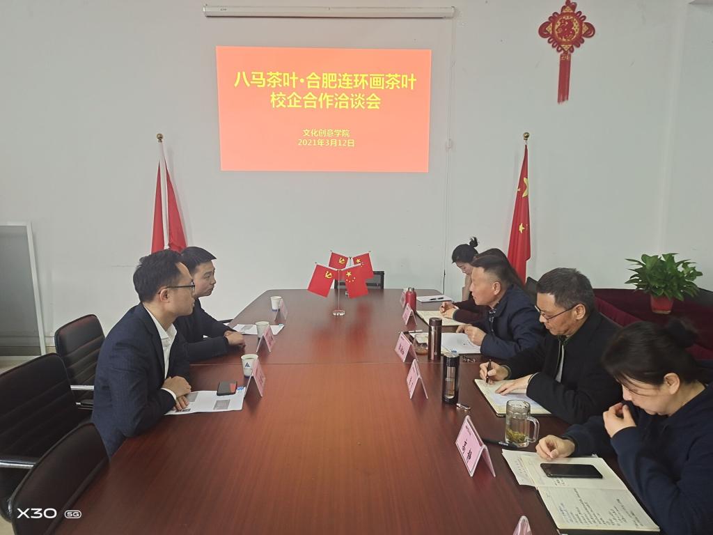3月12日下午,八马茶叶股份有限公司安徽分公司总经理施华鹏及合肥连环画茶叶有限公司总经理李绪化一行来到文化创意学院洽谈校企合作,文化创意学院党总支书记张克、院长郭湘如、副书记宋凌云、副院长高静、办公室主任王帮红、茶旅教研室主任钱晓慧等出席会议,双方围绕产教融合、校企合作、顶岗实习等方面进行了深入地交流。