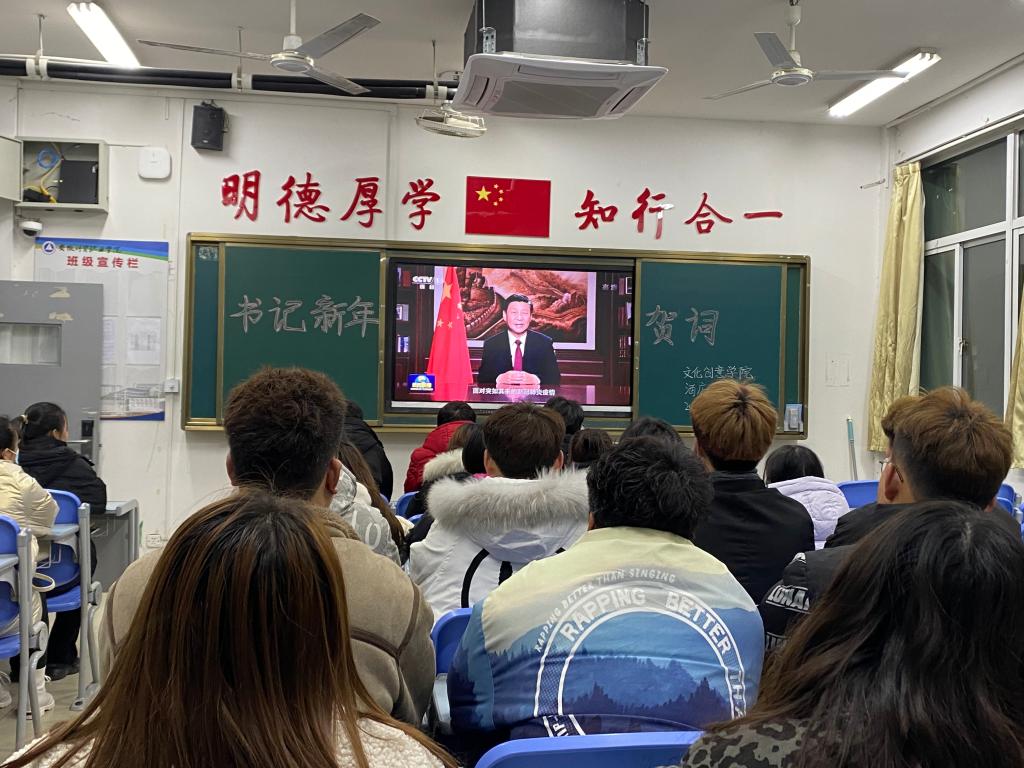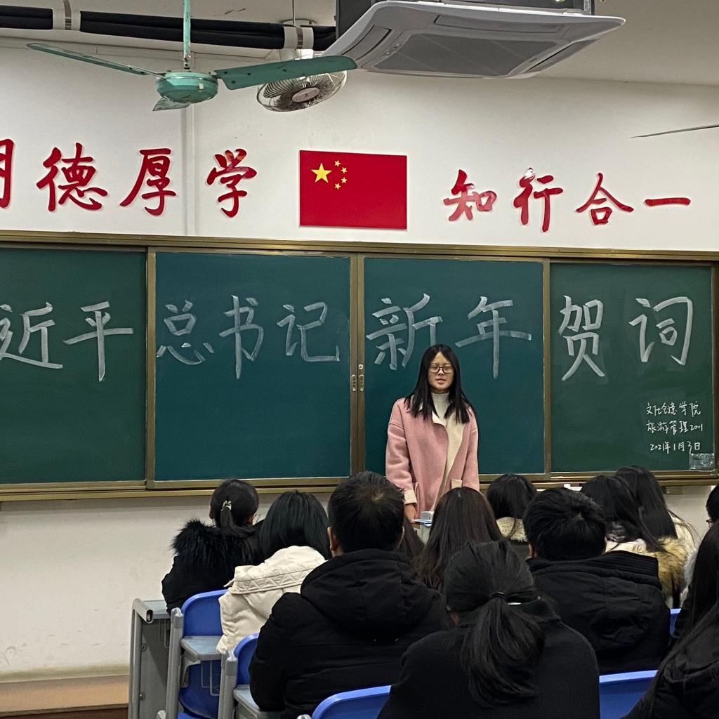 2020年1月3日晚,文化创意学院团总支在新生班级内开展了一次重温习近平总书记2021年新年贺词活动。重温新年贺词,感悟伟大抗疫精神,鼓足脚踏实地加油干的劲头,继续奋斗,勇往直前!