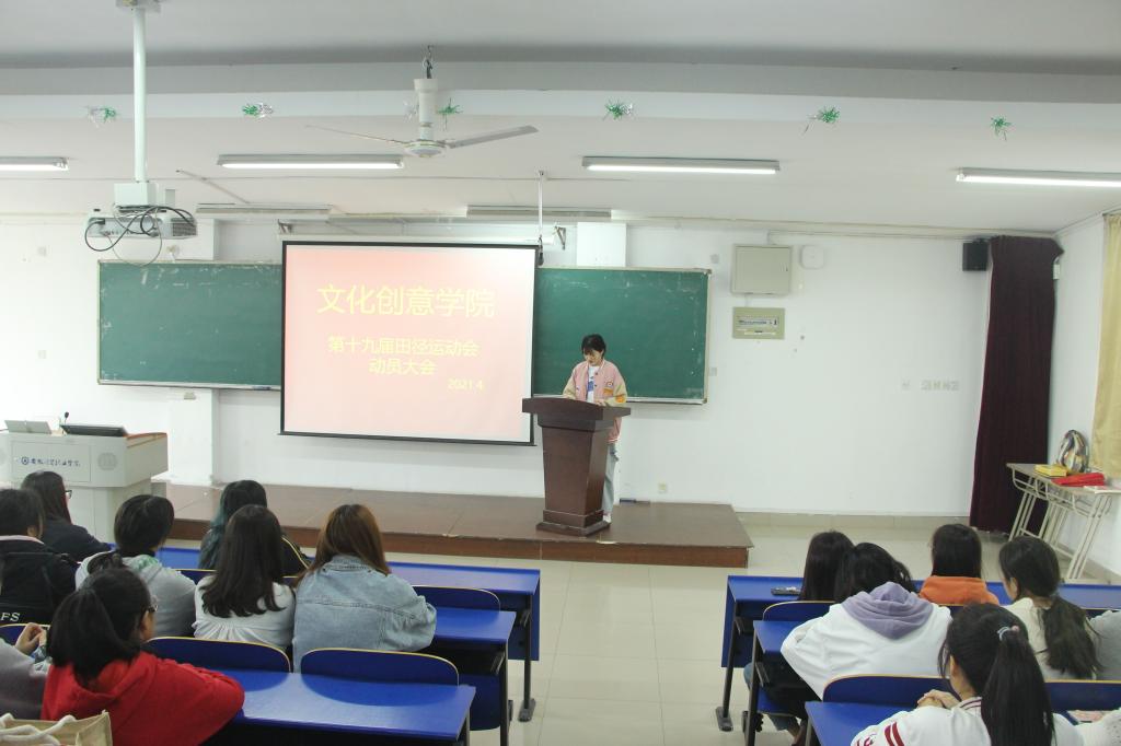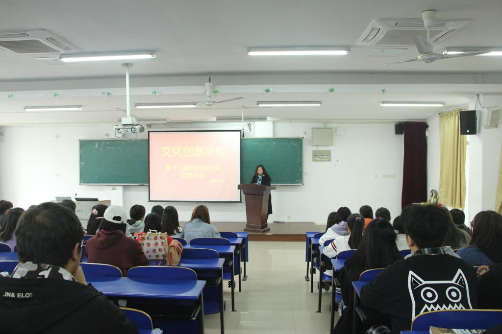 为加强大学生体育素质,全面做好运动会期间各项工作。文化创意学院于4月2日中午在6102教室召开第十九届运动会动员大会。全体团学干部、运动员代表及方阵队代表参加会议。本次会议由团总支书记刘凯主持,院长郭湘如,党总支副书记宋凌云以及全体工作人员出席会议。
