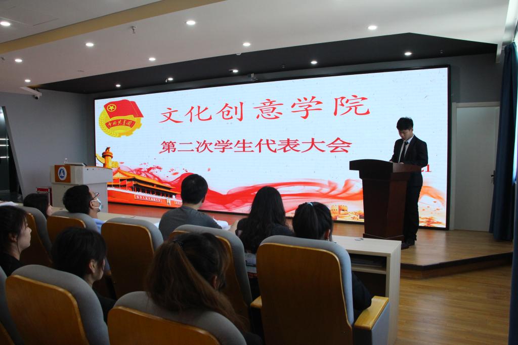 2021年6月21日中午,文化创意学院第二次学生代表大会在导游实训室隆重召开。文化创意学院党总支书记张克、副书记宋凌云出席会议,团总支书记刘凯、学生秘书万幸、教学秘书朱宇、部分青年教师代表及学生代表参加会议。