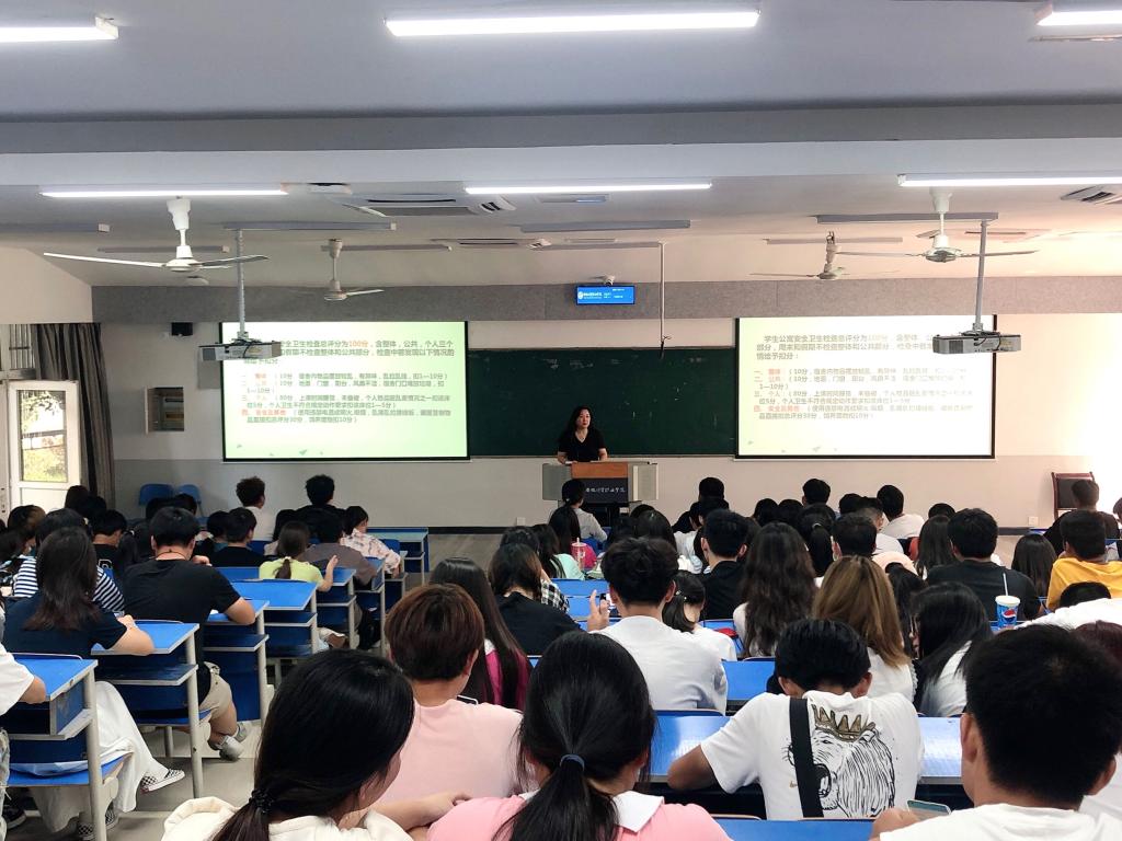 会上,党总支副书记宋凌云对安全卫生文明月工作进行了具体要求与安排,提出实施宿舍卫生检查反馈制度、脏乱差宿舍整改制度等,要求各团学干部与寝室长组织好班级样板宿舍观摩活动,不断提高同学的积极性与参与度。希望各位新生同学能强化责任意识,在宿舍起带头模范作用,营造和谐文明友爱的良好氛围。