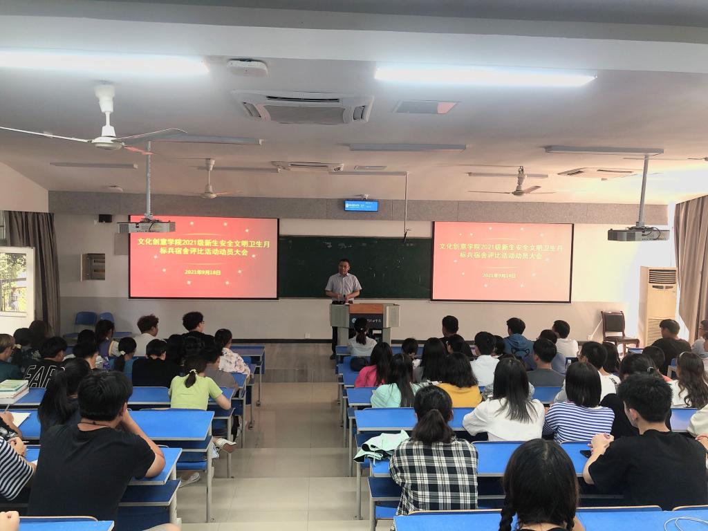为加强新生文明素养教育,养成良好的行为规范,营造健康文明、卫生整洁、温馨舒适的学习环境,文化创意学院9月18日中午在5102教室召开了“2021级新生安全文明卫生月动员大会”,全体新生辅导员老师、辅导员助理、新生班班长及寝室长参加会议。
