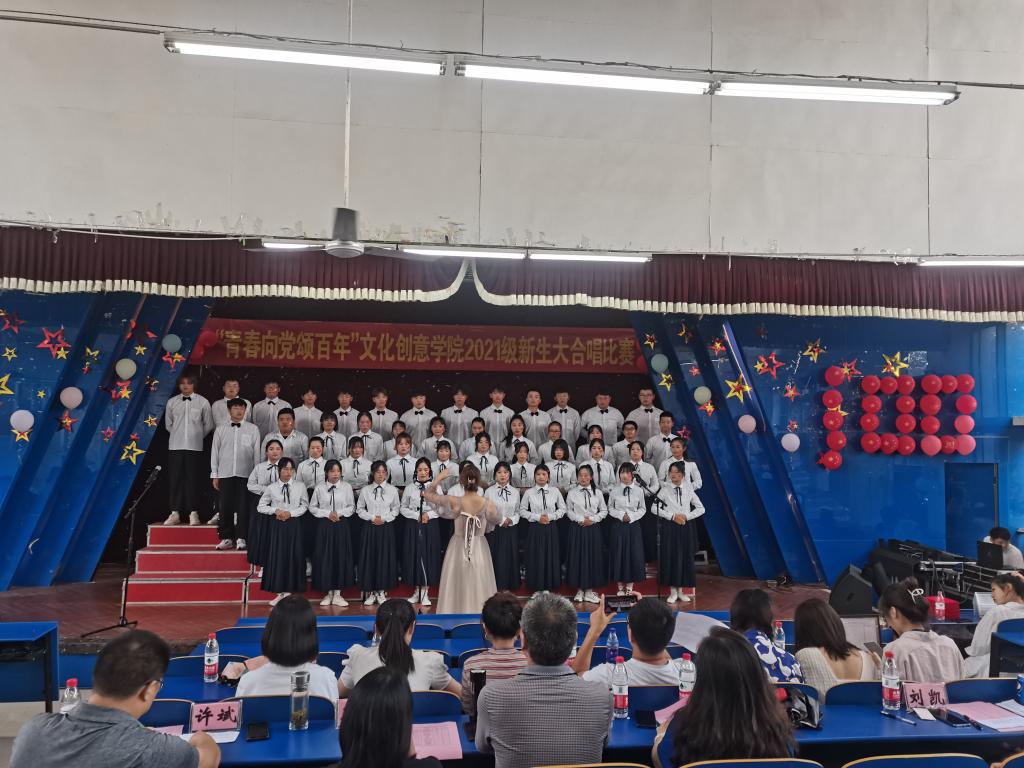 弘扬爱国精神,重温红色经典。9月26日下午,文化创意学院在5103教室举办“青春向党颂百年”2021级新生大合唱比赛。文化创意学院党总支书记张克、副书记宋凌云,办公室主任王帮红、团总支书记刘凯和实训秘书许斌担任比赛评委,2021级新生班级辅导员观看比赛。