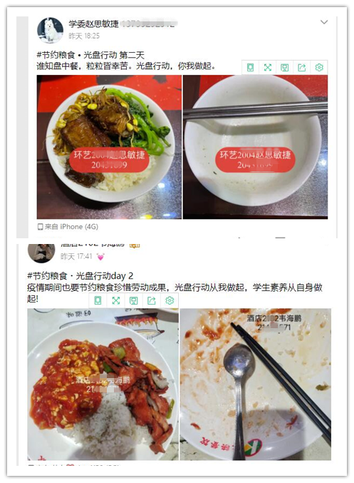 活动通过学生在朋友圈、QQ空间等平台进行打卡,倡议学生珍惜粮食,抵制浪费。通过多重宣传手段,呼吁大家珍惜劳动生活,养成良好行为习惯,同学们开始将“一粥一饭,当思来之不易;半丝半缕,恒念物力维艰”化为了实际行动。减少舌尖上的浪费,不仅仅是个人良好素质的表现,更是一种美德的塑造。