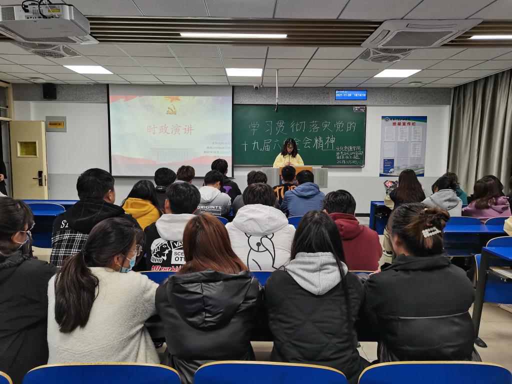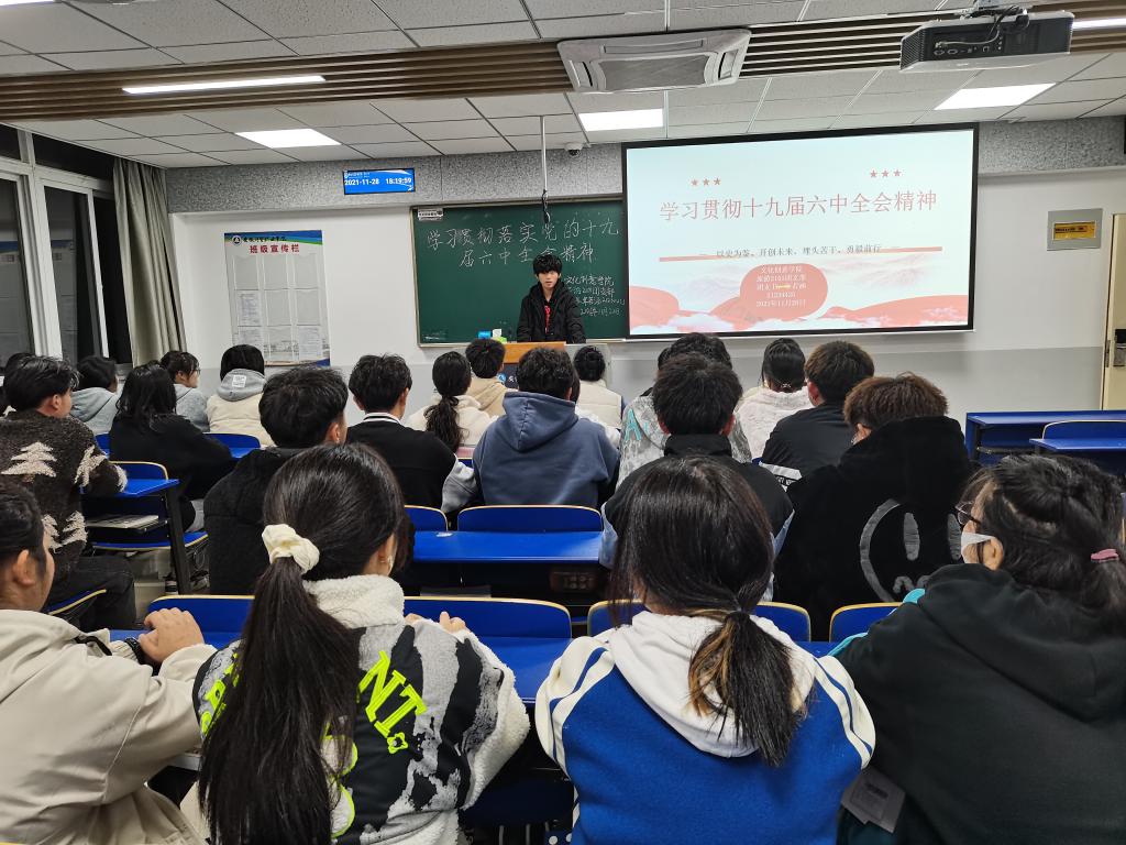 团总支组织各班级团支部观看了中共中央举行的介绍党的十九届六中全会精神的新闻发布会,并就学习贯彻党的十九届六中全会精神进行班级交流,结合实际开展热烈讨论。同学们纷纷表示站在新的历史起点上,要勠力同心、接续奋斗,走好新时代的赶考路。