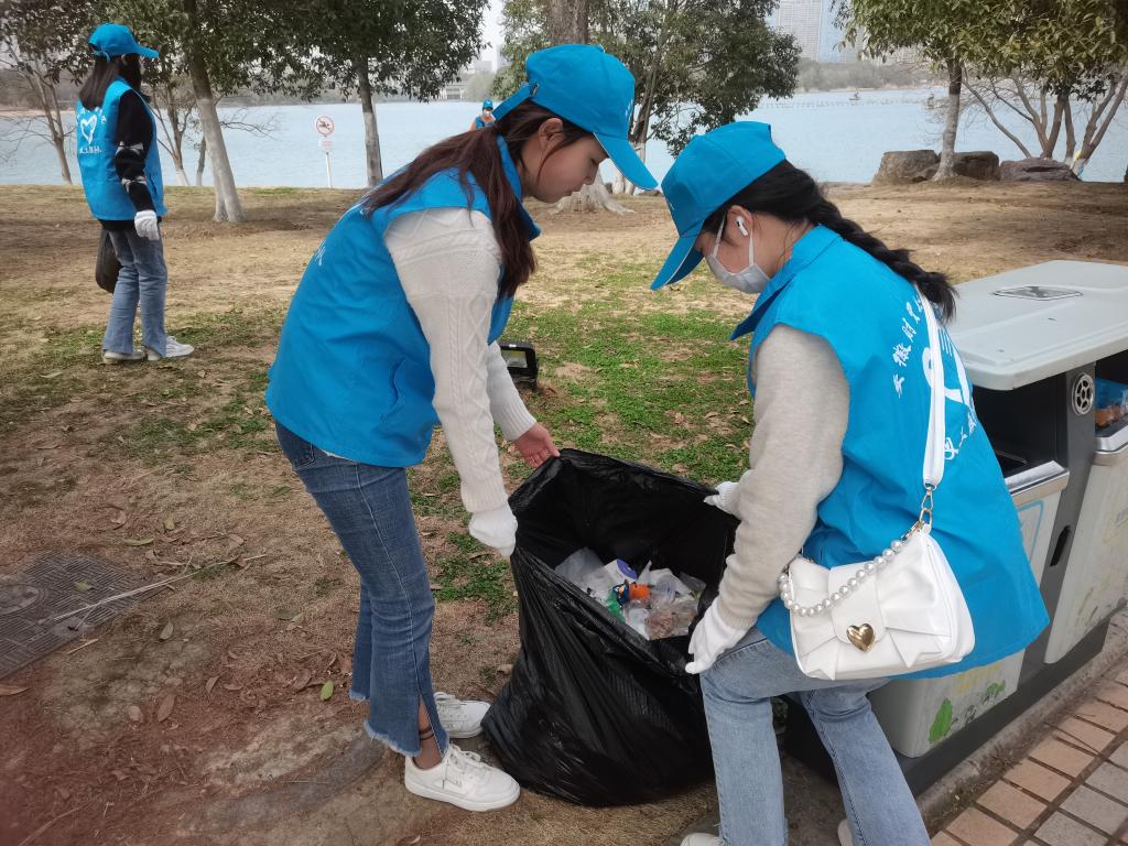活动过程中,志愿者们认真拾捡翡翠湖沿道垃圾,仔细地将散落在道路上、草丛里、夹缝中的树叶、烟头、废纸、包装袋等垃圾捡拾起来,装入自带的垃圾袋中。同学们还担任起环境卫生“宣传员”,积极向行人及周边居民宣传低碳生活、垃圾分类等环保理念,普及生态环保和污染防治常识,倡导绿色低碳生活,以实际行动践行雷锋精神,把崇高理想信念和道德品质追求转化为具体行动。