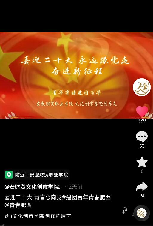 宣传片可通过文化创意学院官方抖音账号(安财贸文化创意学院. 抖音号:wenhuachuangyi)进行观看。(供稿:刘凯 审稿:张克)