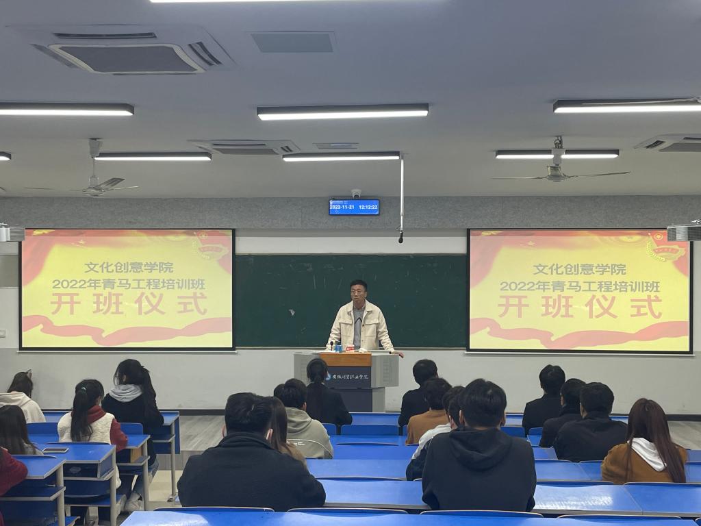 为深入学习宣传贯彻习近平新时代中国特色社会主义思想,进一步掀起我院青年学生学习宣传贯彻党的二十大精神热潮,11月21日,文化创意学院举行2022年度“青马工程”培训班开班仪式,会议由团总支书记刘凯主持。
