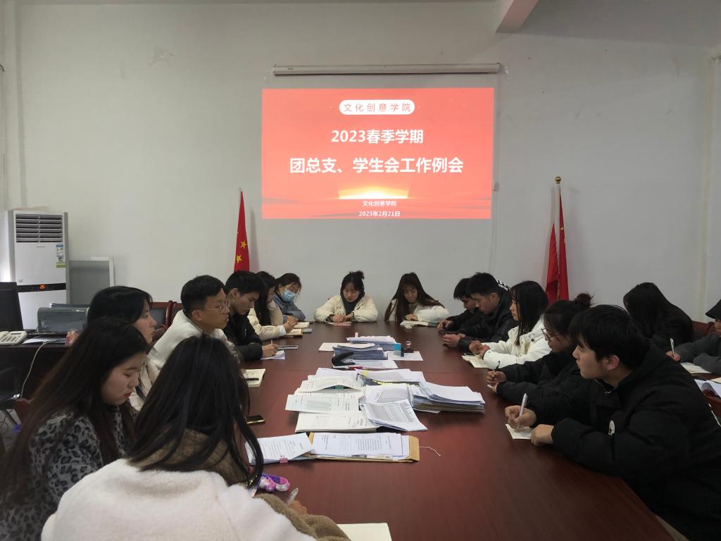 为保障新学期各项工作的有序开展,做好团学干部工作部署。2月21日,文化创意学院召开2023年春季学期第一次团学干部例会,全体团学干部参加会议,团总支书记刘凯主持会议。
