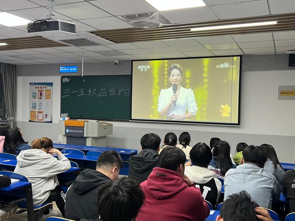 活动开始前,各班权益维护委员向大家简要介绍了本次活动的目的和意义,随后共同观看了主题为“由诚信之光照亮消费信心”的“315晚会”。晚会直播通过曝光各种案例,比如消费水军、电子产品信息泄露、化妆品等案例让同学们在观看过程中感触良多,深切体会到了消费安全问题的严重性,了解了侵害消费者权益的事件近在身边,警醒他们提高消费保护意识。