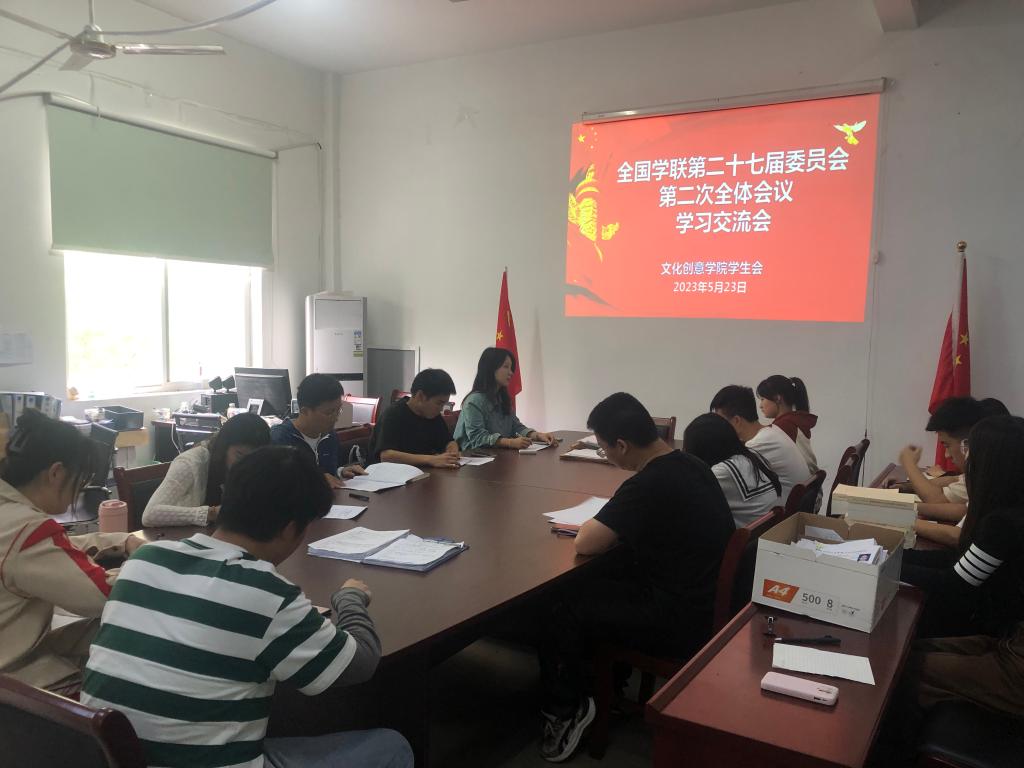 2023年5月23日,文化创意学院团总支组织召开学习全国学联第二十七届委员会第二次全体会议成果活动,学习活动由团总支书记刘凯主持,全体团学干部参加学习活动。