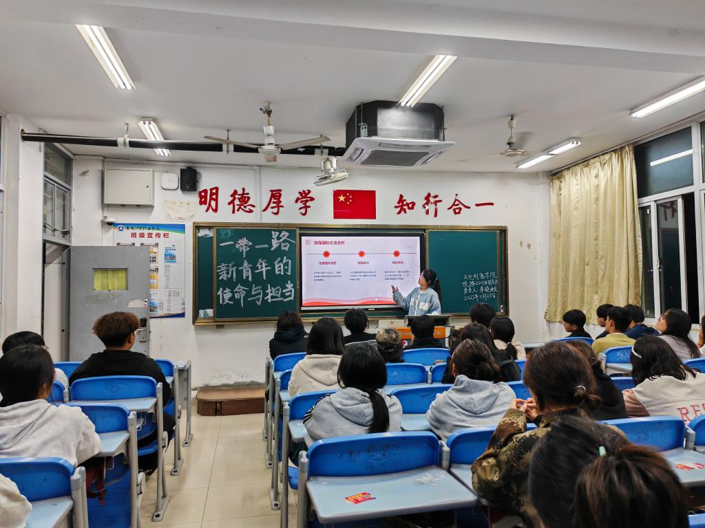 在共建“一带一路”倡议提出十周年之际,为进一步增强青年勇于担当时代重任的责任感,自觉传承实现中华民族伟大复兴的时代使命。10月25日晚,文化创意学院团总支组织各班团支部开展“‘一带一路’,新青年的使命与担当”主题时政活动。