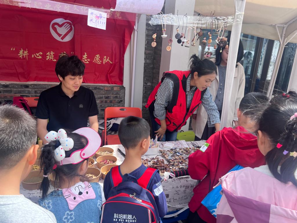 活动中,学院立足专业特色,精准对接乡村发展需求,让志愿服务更具针对性和实效性。旅游管理专业志愿者化身乡村讲解员,生动讲述马郢村的历史底蕴与发展变迁,传递乡村文化魅力;茶艺与茶文化专业志愿者在马郢市集现场调制新式茶饮,将专业理论与市场实践深度融合,丰富市集业态的同时,为游客带来新颖味觉体验;广告艺术设计专业志愿者发挥创意优势,手工制作香包、宋锦饰品等文创产品,为乡村市集注入青春创意,提升市集文化品位。