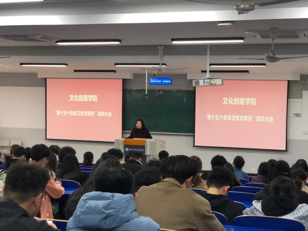 为了加强学生行为规范教育,提升学生文明素养,文化创意学院3月4日中午在6102教室召开了“第十五个安全卫生文明月动员大会”,党总支副书记宋凌云、全体专职辅导员老师、团学干部、班长、寝室长参加了会议。