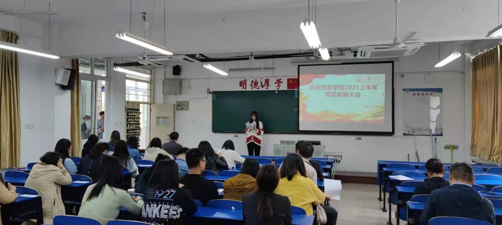4月28日中午,文化创意学院学生党支部在4104教室召开了2021年上半年党员发展大会,全体党员教师和54名发展对象参加了此次会议。本次会议由学生党支部书记宋凌云同志主持。