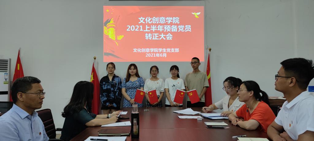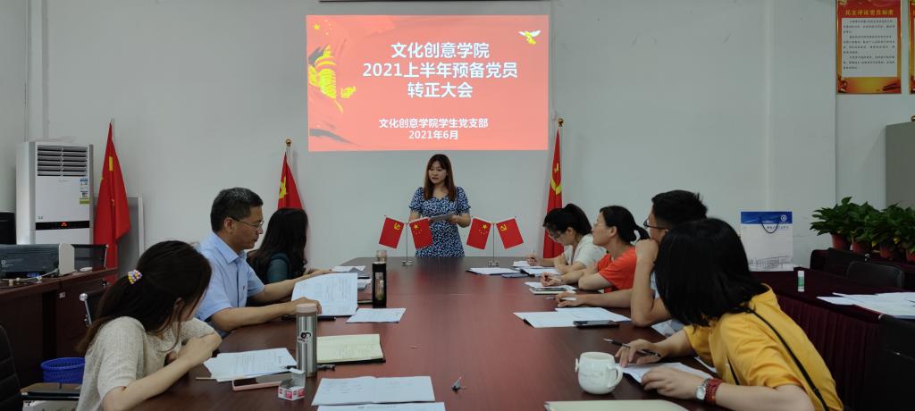 6月23日,文化创意学院学生党支部在综合楼210召开2021年上半年预备党员转正大会。党总支书记张克、学生党支部书记宋凌云出席会议,全体学生党支部党员老师参加会议。