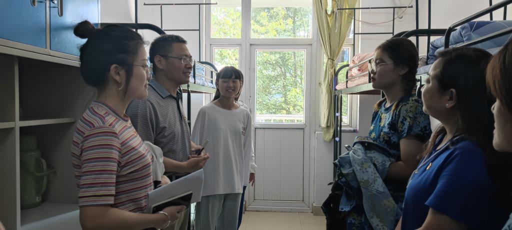 走访过程中,党员老师们纷纷和同学们谈话谈心,指导学生提高内务整理水平,传授同学们防电诈的“小绝招”,帮助同学们解决生活中遇到的“小困惑”,抚慰同学们心理上的“小情绪”,场面融洽温馨。