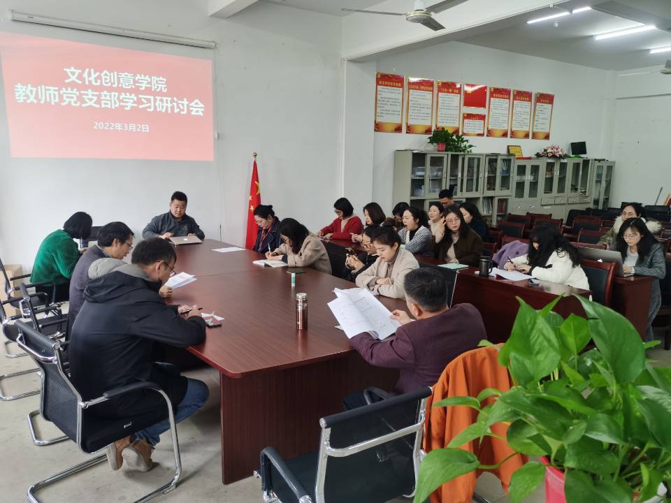 3月2日下午,文化创意学院教师党支部在综合楼210党员活动室举行支部党员学习研讨会。学习《中共中央关于党的百年奋斗重大成就和历史经验的决议》以及《中共beat365在线唯一官网委员会关于召开2021年度基层党组织组织生活会和开展民主评议党员的通知》等文件精神。会议由支部书记沈东生主持,支部全体党员教师参加本次学习活动并展开讨论。