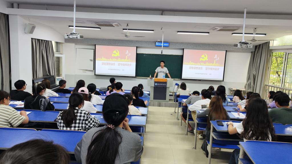5月26日,文化创意学院学生党支部组织委员刘凯在教学楼5101教室开展了一次以“坚定理想信念 坚守精神追求”为主题的微党课。学院第53期入党积极分子聆听了党课。