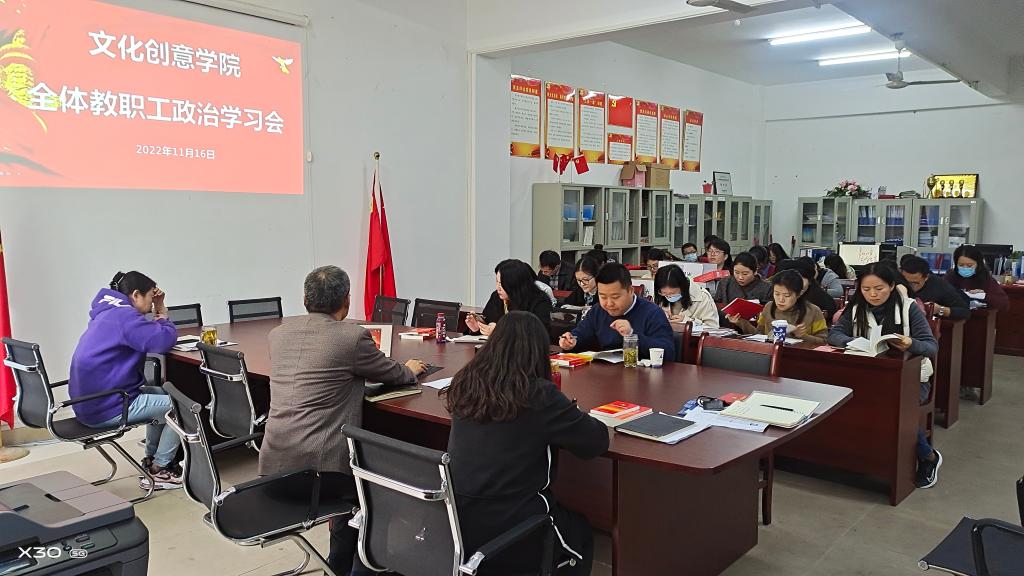 11月16日下午,文化创意学院召开全体教职工政治学习会。会议由党总支书记张克主持,全体教职工参加学习。