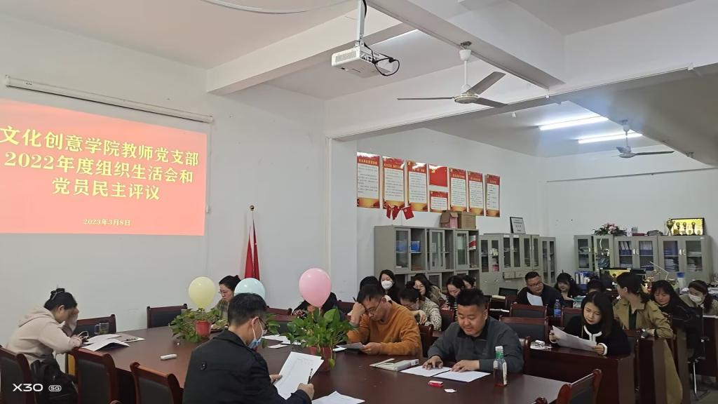 3月8日下午,文化创意学院教师党支部在综合楼210党员活动室召开了2022年度组织生活会暨民主评议党员会议。会议由支部书记沈东生主持,文化创意学院教师党支部全体党员参加了会议。