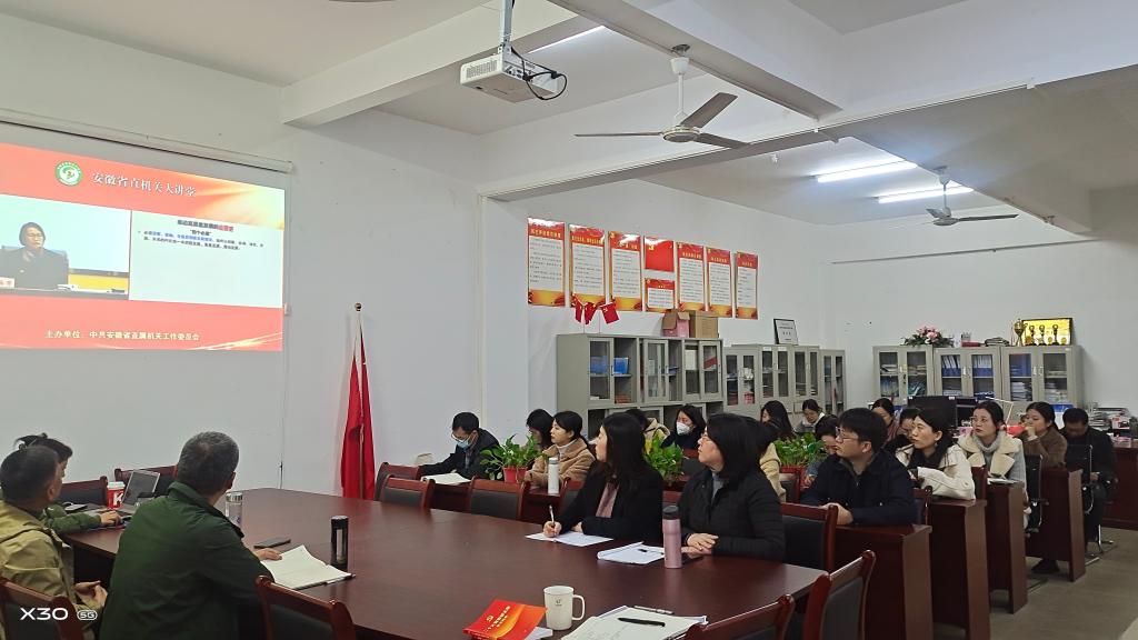 3月22日下午,文化创意学院全体教职工在综合楼210党员活动室集中收看了由省委党校党建教研部主任,第十三届、十四届全国人大代表吴梅芳教授作的“十四届全国人大一次会议精神解读”专题辅导报告。