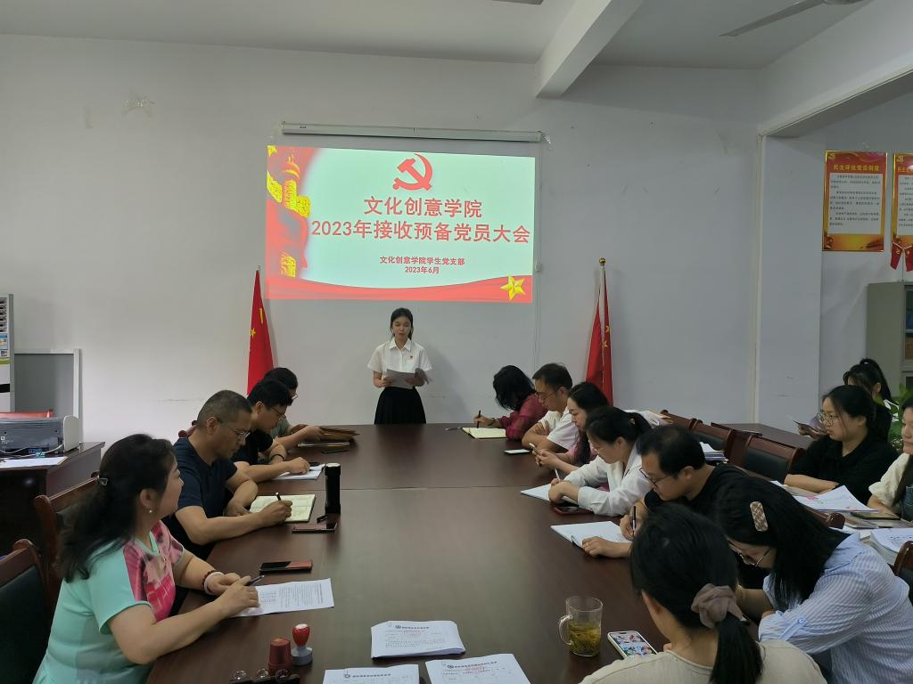 2023年6月29日,文化创意学院学生党支部召开2023年预备党员接收大会。会议由学生党支部书记宋凌云同志主持,发展对象、入党介绍人、学生党支部全体党员同志参加会议。