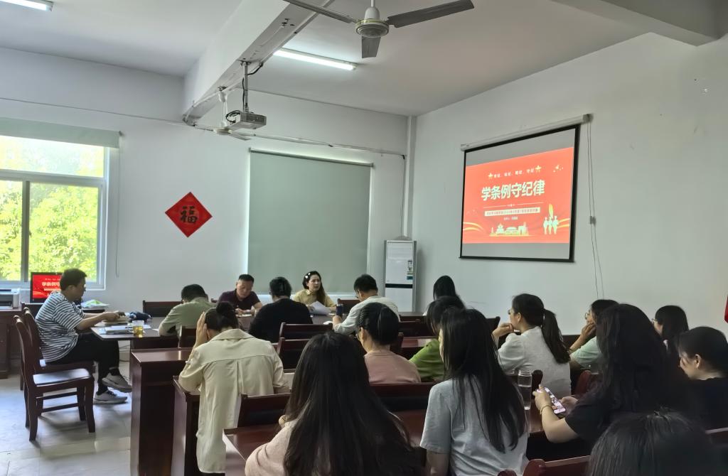 5月29日下午,文化创意学院在综合楼210党员活动室开展党风党纪专题党课活动,党总支副书记倪晶晶主讲,全体党员教师参与学习。