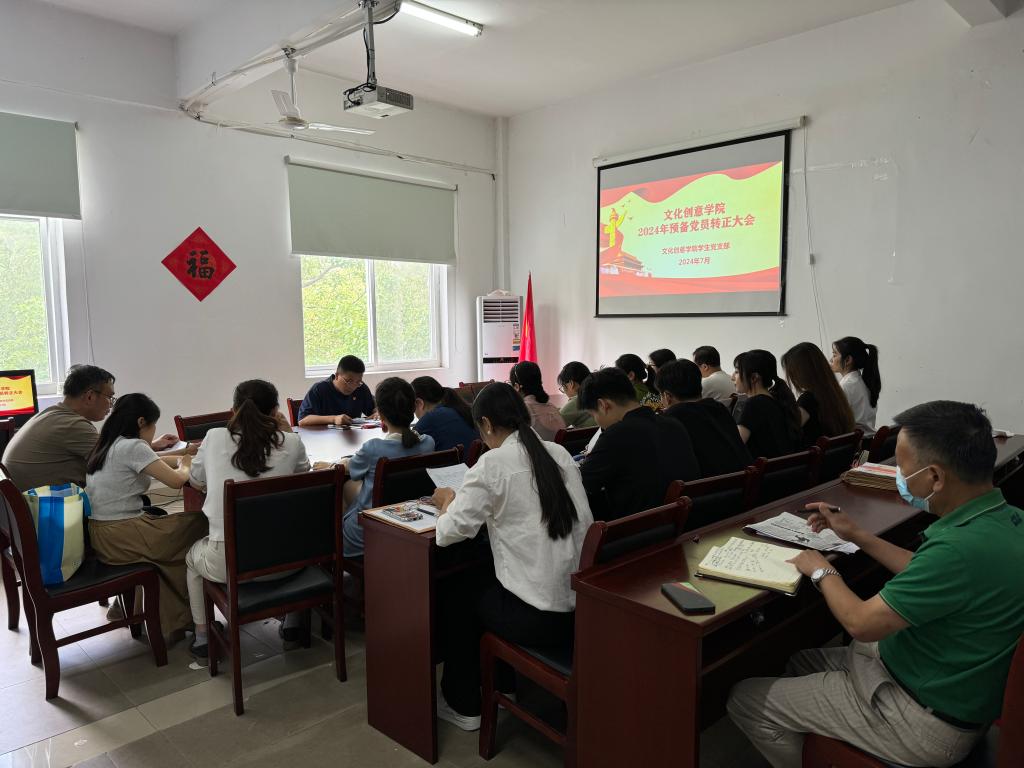 7月1日下午,文化创意学院学生党支部在综合楼210党员活动室召开预备党员转正大会,讨论关于预备党员杨延萍等六位同志的转正问题。会议由学生党支部书记刘凯主持,支部全体党员及入党介绍人参加了会议。