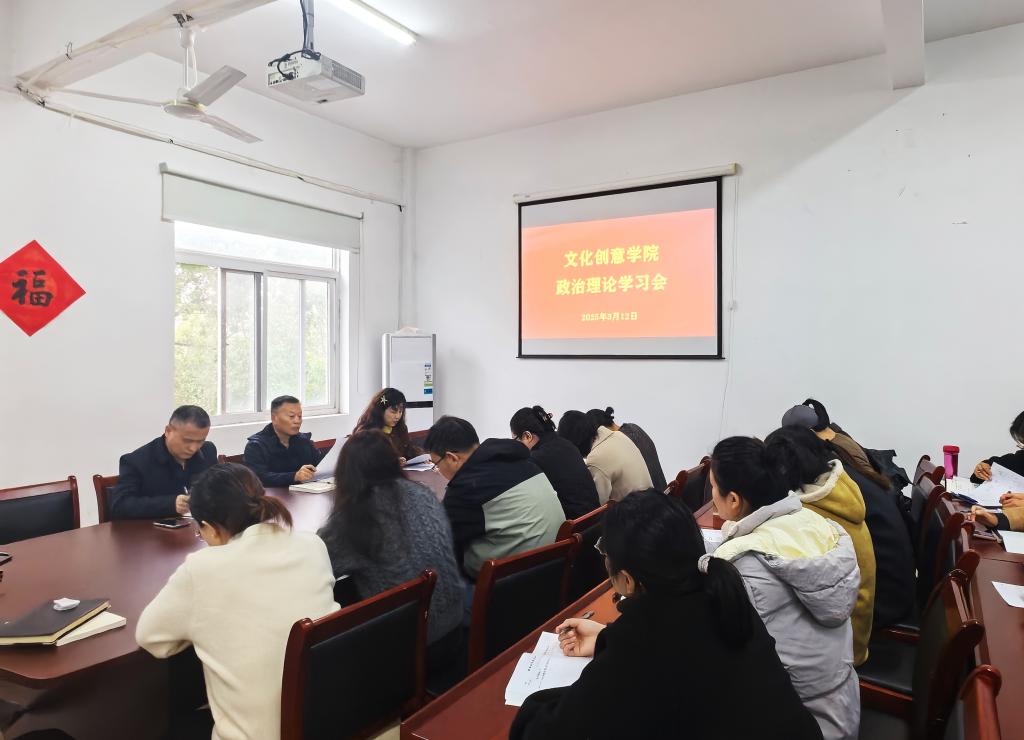 3月12日下午,文化创意学院在综合楼210党员活动室召开政治理论学习会,全体教职工参会。