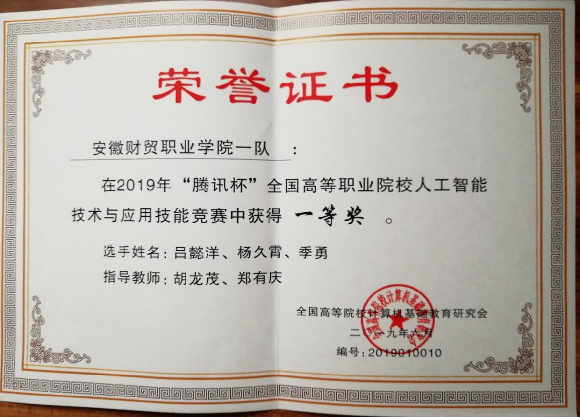 2.2019年,获“腾讯杯”全国高等职业院校人工智能技术与应用获得一等奖。