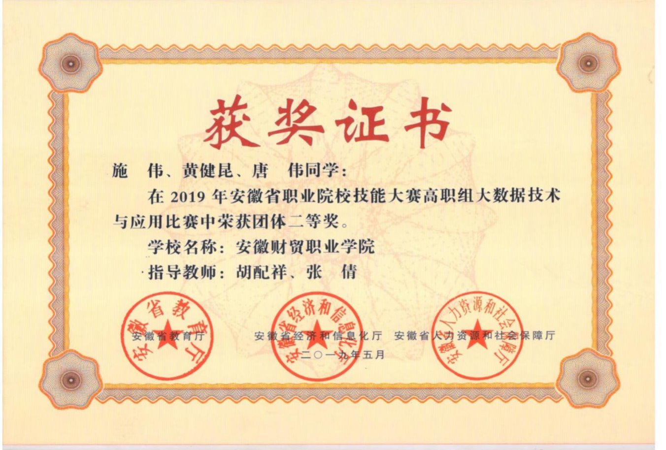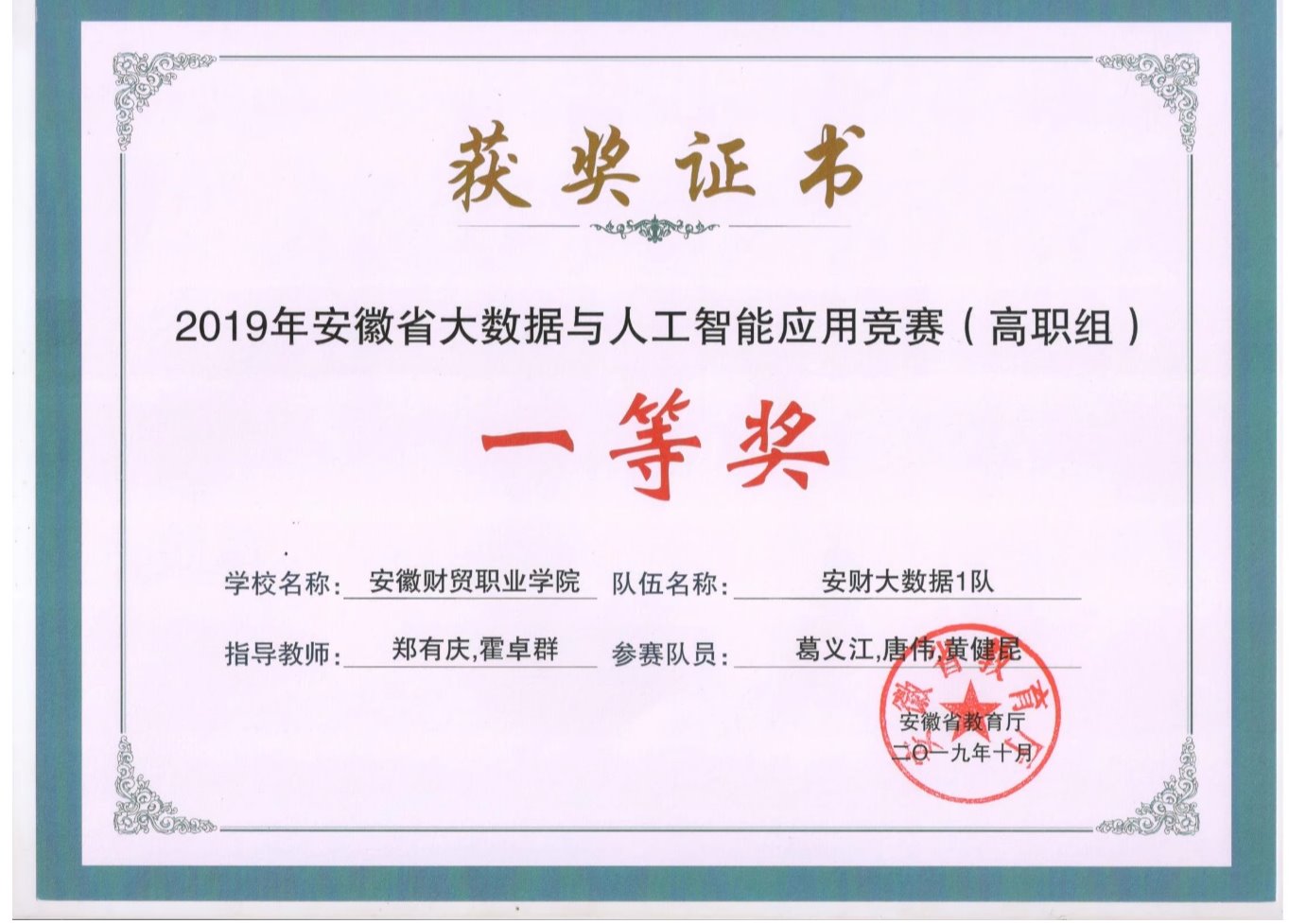 图1 2019年安徽省大数据与人工智能应用竞赛一等奖