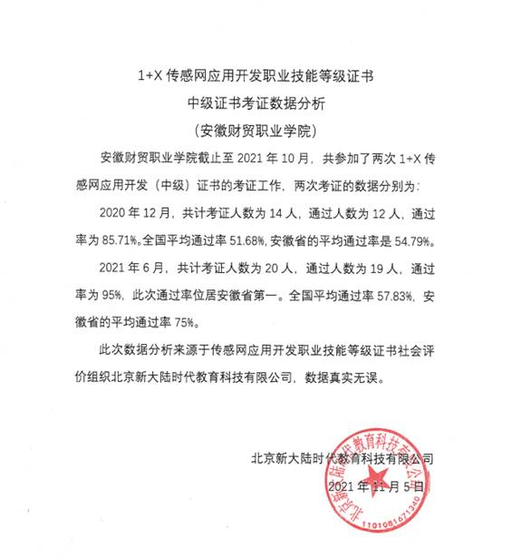 图12 1+X证书(传感网应用开发中级职业技能等级考证数据分析)