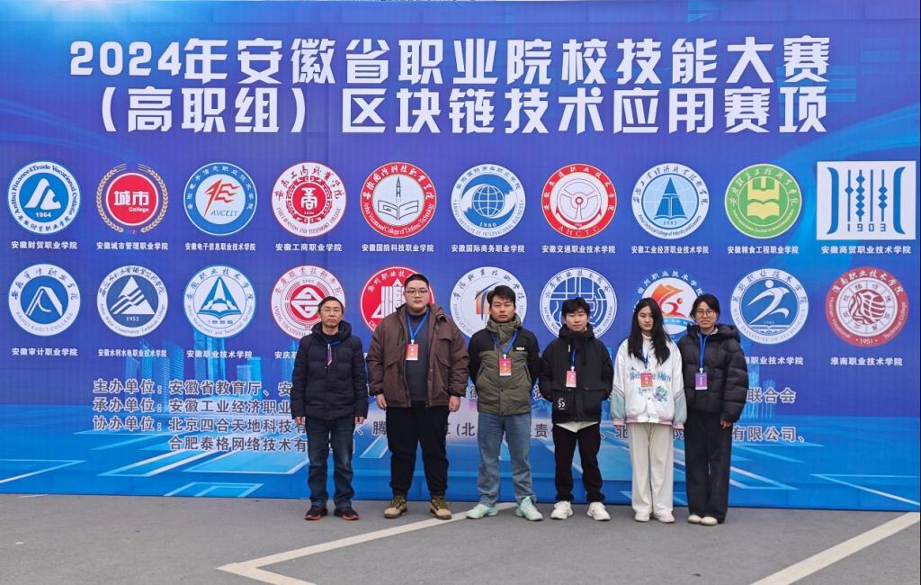 1月4日,2024年安徽省职业院校技能大赛(高职组) “区块链技术应用”赛项在安徽工业经济职业技术学院进行。未来技术学院胡龙茂、翟莉老师指导的曾丽雯、汪翔团队,胡龙茂、胡超老师指导的周杨、蒋展鹏团队双双获得二等奖。