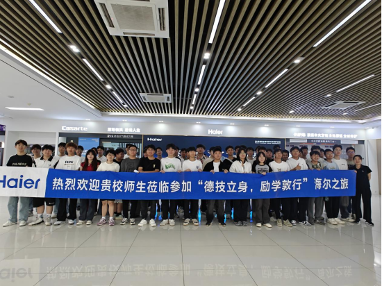 参观第一站为海尔空调卡萨帝展厅,企业工作人员详细介绍了海尔空调的发展历程、技术革新、生产运营和管理等情况,使学生们对智能制造背景下空调生产情况有了更加深刻的了解。