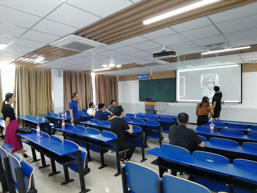 各部门负责人在听取了项目负责人建设汇报,真切体验了样板实验间的教学环境与操作演示后,见仁见智,分别对多媒体教学设备的人性化设计体验、装修材料、灯光布局、色彩搭配、空间氛围等多方面提出改进建议,参观现场俨然变成了一场小型研讨会。下一步中心将督促施工单位认真对标先进,及时整改完善,然后全面施工,确保智慧教室在今年秋季开学正式启用。