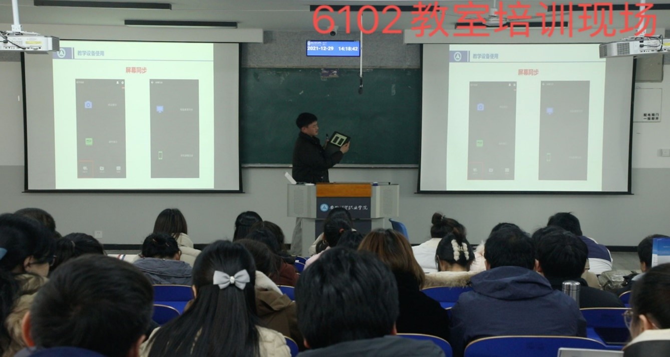 我校的59间常态化智慧教室现已投入使用,为充分发挥智慧教室的功能,提升智慧化教学水平,现代教学技术中心于12月29日下午在6101和6102阶梯教室组织开展了我校全体专兼职教师常态化智慧教室设备使用的培训。