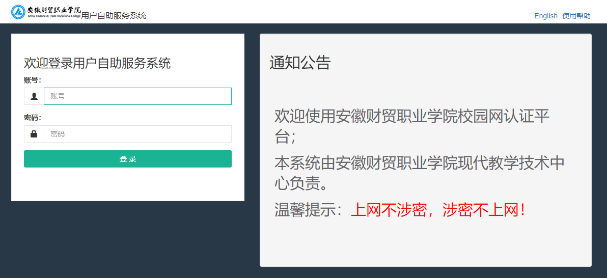 2.1 校园网自助服务系统首页功能