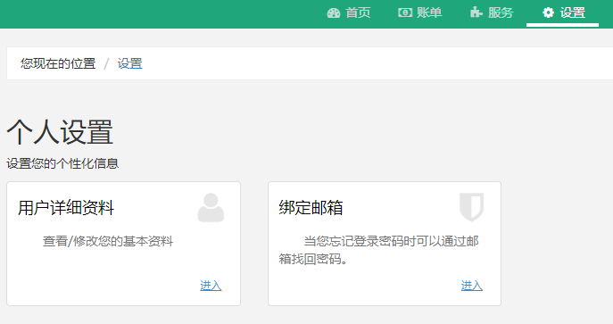 “设置”页面可以维护个人信息或进行密码修改。此项功能暂时未开启。