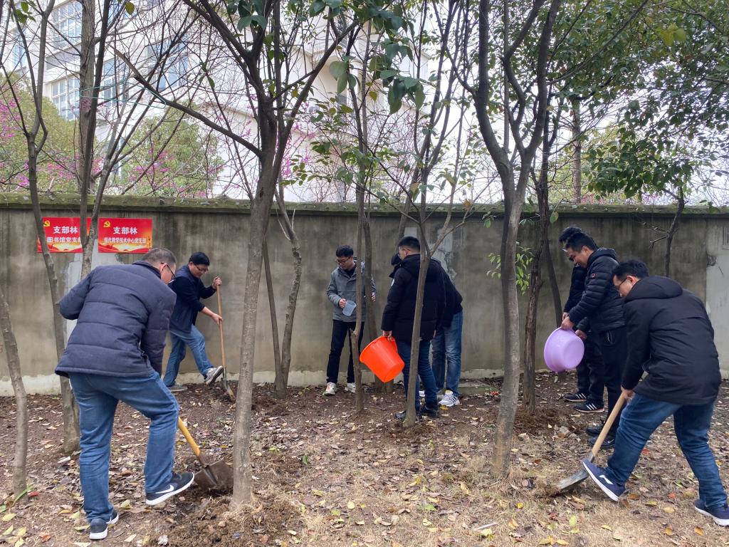 在植树点,大家手持铁锨,干劲十足地为一棵棵充满生机与希望的树木翻土,党员同志们相互帮助提桶、打水、挖坑、翻土、施肥,干得好不热闹,很快便完成了树木的保养、绿化工作。