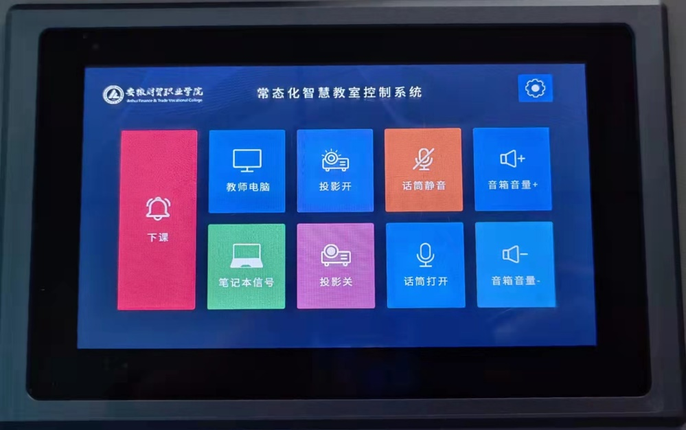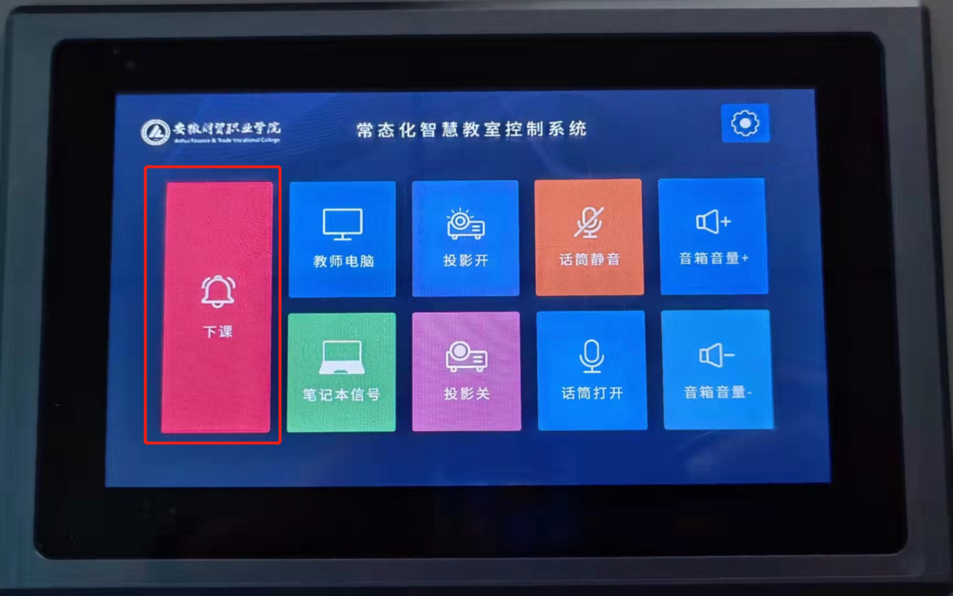 二、下课模式:老师只需要轻触液晶控制面板红线框中“下课”即可关闭教室内所有教学设备;