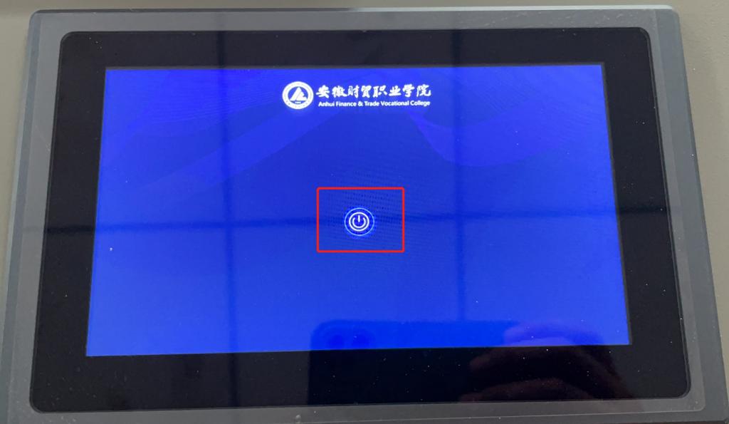 (1)老师只需要轻触液晶控制面板(节能模式下屏幕关闭呈黑色,触控后屏幕亮起显示界面),就会显示开启按钮,点击红线框中的开启按钮,即可进入上课模式: