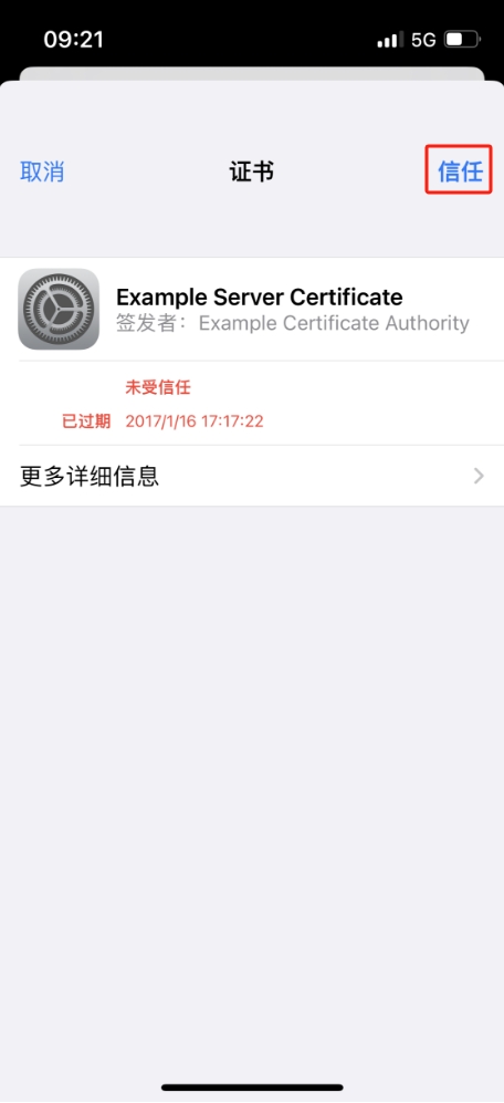 若设备为苹果系统,输入用户名和密码点击“加入”后,会弹出证书信任页面,点击“信任”即可。